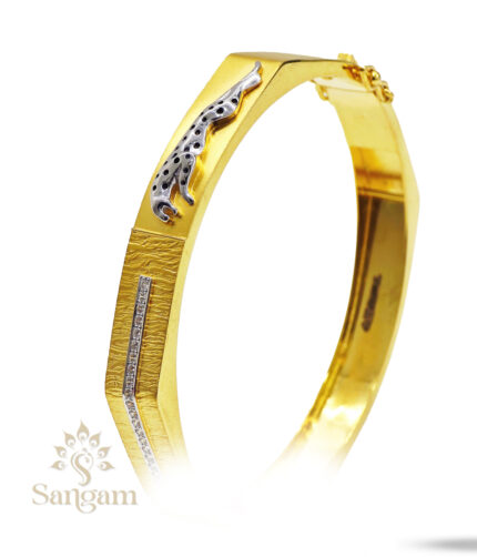 A 22KT fancy Fancy bangle in yellow gold (25.970gms). It looks lovely in the classic traditional design
