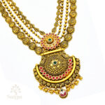 A 22kt yellow gold traditional Haram malai (95.000gms). A delightful blend of ethnic and contemporary, this Haram will complement any look!