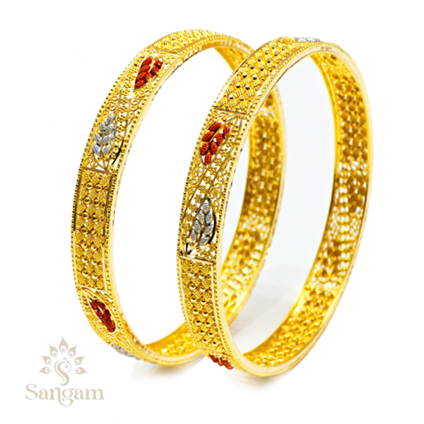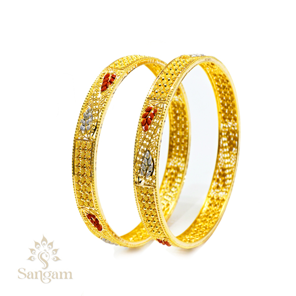 A 22KT fancy Fancy bangle in yellow gold (25.970gms). It looks lovely in the classic traditional design