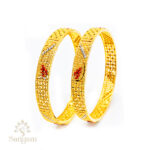 A 22KT fancy bangle in yellow gold (31.390gms). It looks lovely in the classic traditional design