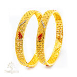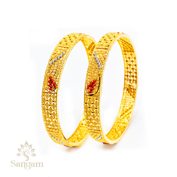 A 22KT fancy fusion bangle in yellow gold (24.230 gms). It looks lovely in the classic traditional design