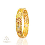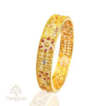 A 22KT fancy fusion bangle in yellow gold (32.090 gms). It looks lovely in the classic traditional design