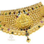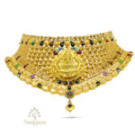 A 22kt yellow gold Choker (40.060gms). A gold Choker rests gently on her collar, whispering stories of beauty and strength.