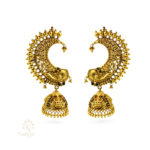 A 22KT beautiful pair of earrings in Antique gold (61.040gms). Delicate, light and understated, these earrings make a quiet, yet strong, fashion statement