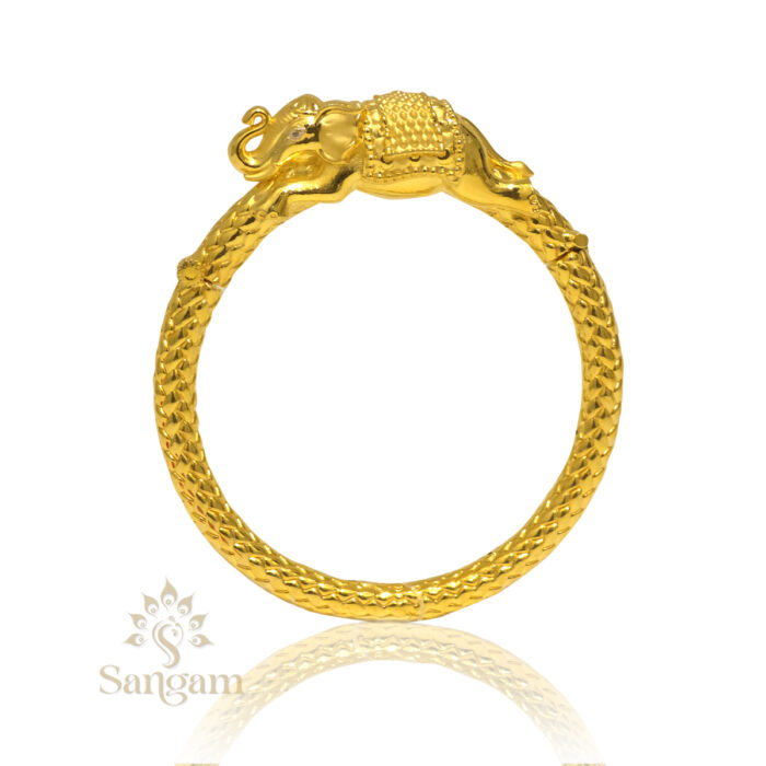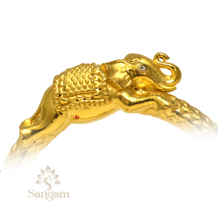 A 22KT yellow gold elephant kada (16.230gms) for men. Blending tradition with modern design, today’s gents’ Kadas are stylish accessories for men who value both culture and fashion