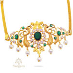 A 22kt yellow gold Choker (40.060gms). A gold Choker rests gently on her collar, whispering stories of beauty and strength.