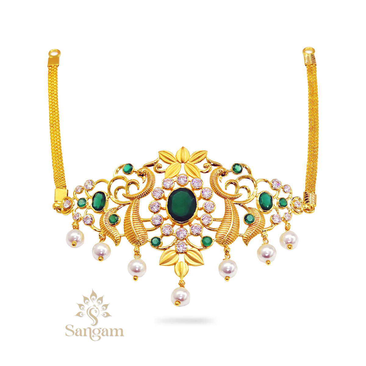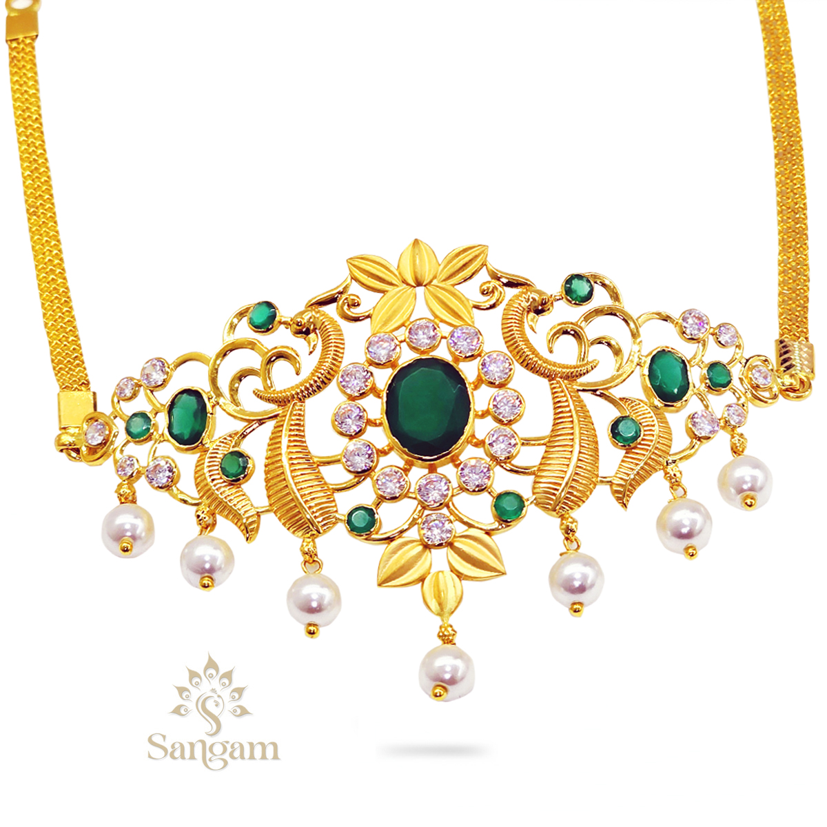 A 22kt yellow gold imported bridal stone necklace (24.600gms). A delightful blend of ethnic and contemporary, this necklace will complement any look!