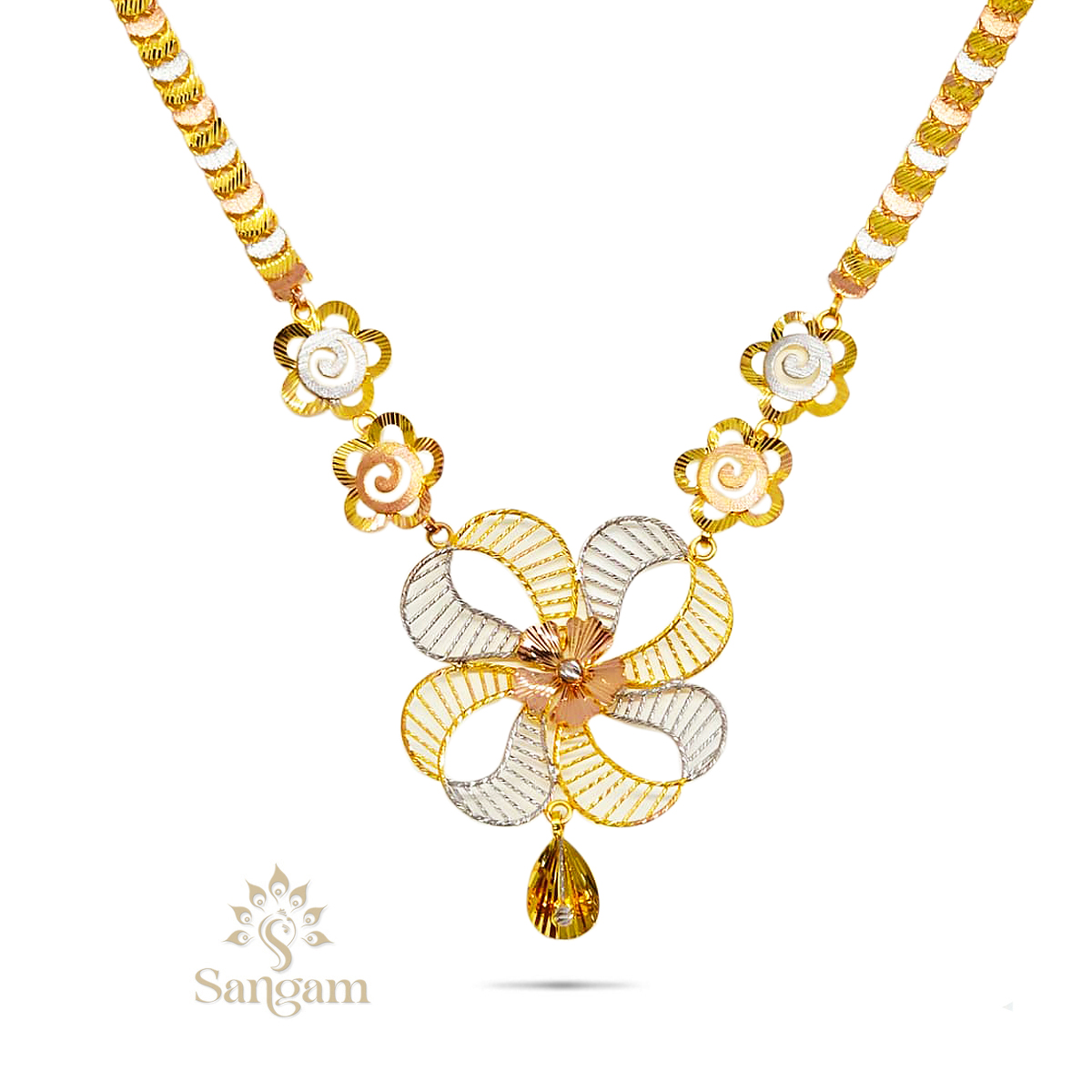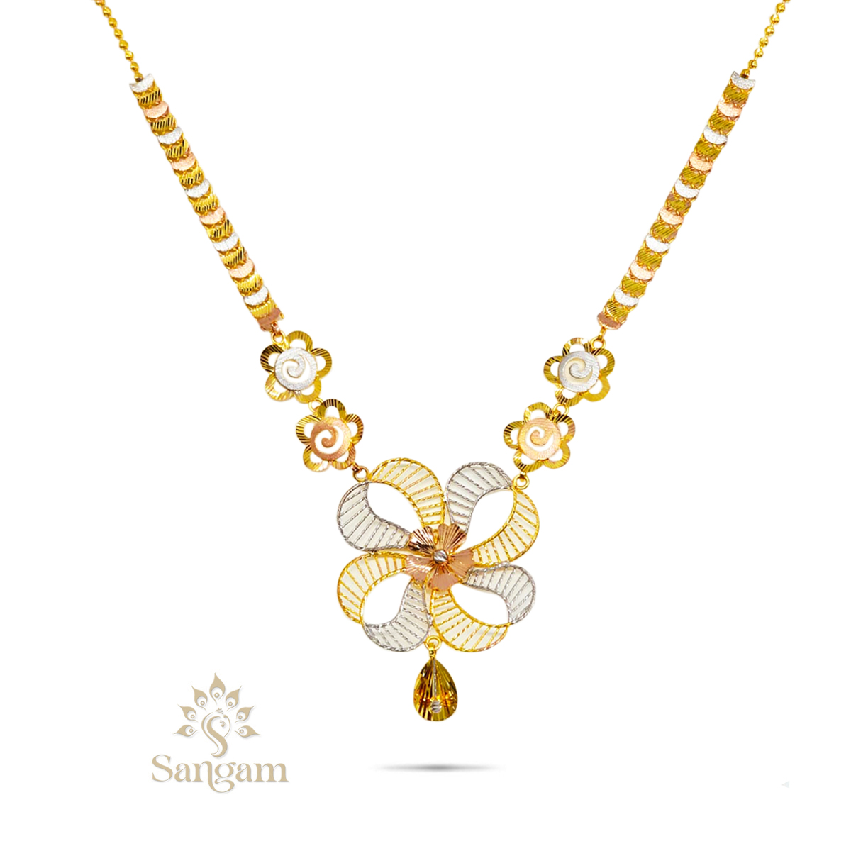 A 22kt yellow gold traditional necklace (15.990gms). A delightful blend of ethnic and contemporary, this necklace will complement any look!